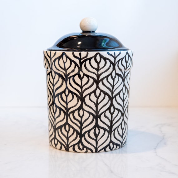 Black Ceramic Kitchen Canisters & Jars for sale | eBay Drake Design Tuscan Scroll lrg / med Black Canister Ceramic Resin Tuscan Baroque. $179.95. $37.45 shipping. Canister By Old Pottery Company Sugar Tea Or Coffee You Choose Black, White. New.