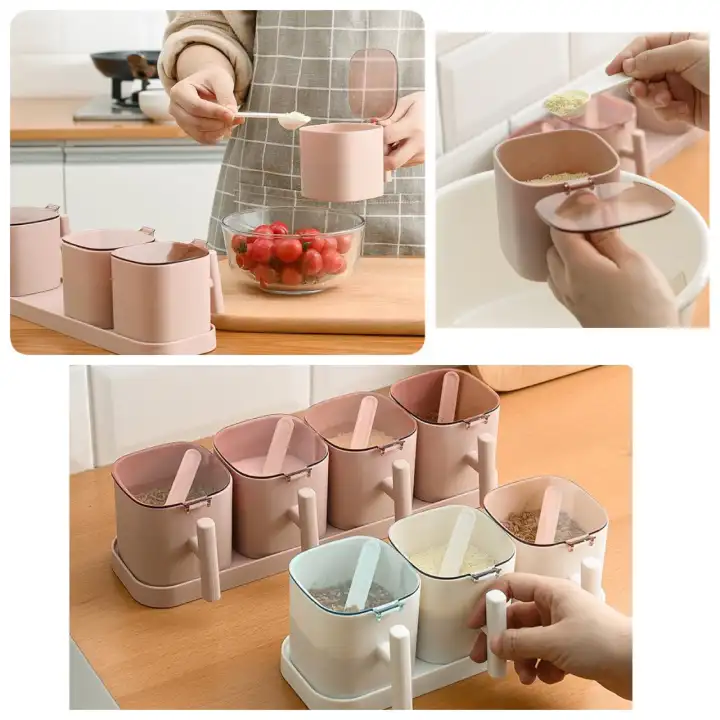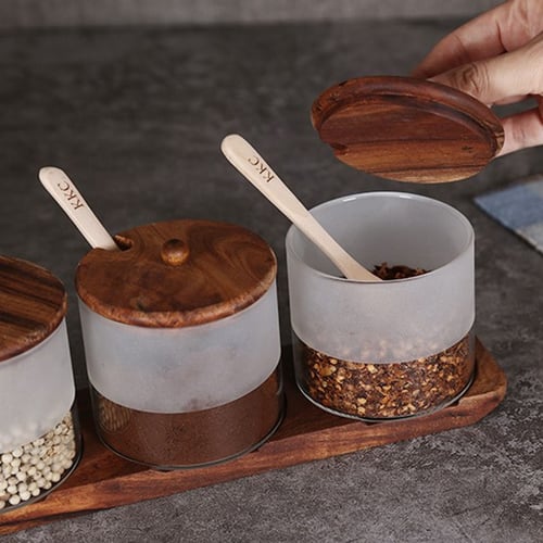 Kitchen Seasoning Spices Container Jar with Lid Cover and Spoon set Condiment Box Salt Sugar Container
