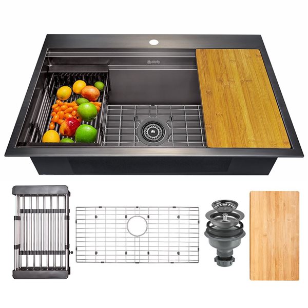 Top 10 Drop In Kitchen Sinks of 2022 - Best Reviews Guide Luckyhorse 33 inch Black Sink Drop in Farmhouse Kitchen Sink with Workstation Rounded Edges 2 Holes and Black NANO Accessories,16 HOSINO 31 Inch Drop In Kitchen Sink Stainless Steel Topmount 16 Gauge Workstation Sink R10 Single Bowl Kitchen Sink with Cutting Board Roll-up...