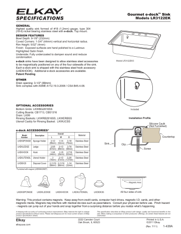 Elkay Gourmet Drop-In 31-in x 22-in Brushed Satin Single Bowl ... Shop Elkay Gourmet Drop-In 31-in x 22-in Brushed Satin Single Bowl 4-Hole Kitchen Sink at Lowe's.com. Elkay has been a trusted name in stainless steel since 1920. Through the years, our engineering and manufacturing methods have continued to evolve. Our