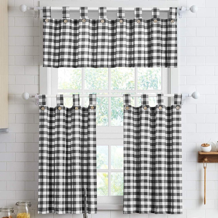 Farmhouse Curtains For Kitchen | Wayfair Add farmhouse chic to your kitchen window with the No. 918 Annabelle Farmhouse Plaid Semi-Sheer Rod Pocket Kitchen Curtain Valance featuring a classic gingham plaid design. Simple rod pocket design allows for easy slide-through installation on curtain rods up to ¾" in diameter.