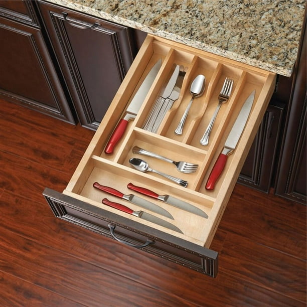 Wood Kitchen Drawer Organizer Inserts, Rev-a-Shelf 4WCT ... Organize kitchen drawers with Rev-A-Shelf's new Wood Cutlery Tray Insert. The 4WCT Series is made of our classic birch/maple hardwood with a UV-cured clear finish to ensure an acceptable match to any kitchen cabinet.