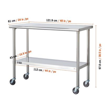 TRINITY Stainless Steel Prep Table | Costco TRINITY's high quality all stainless steel table is great for your indoor, outdoor, kitchen, or garage needs. NSF certified, this table is built with a fully-adjustable bottom shelf to store anything you need. It also comes with NSF certified wheels which makes this the perfect mobile unit. Features: All stainless steel construction
