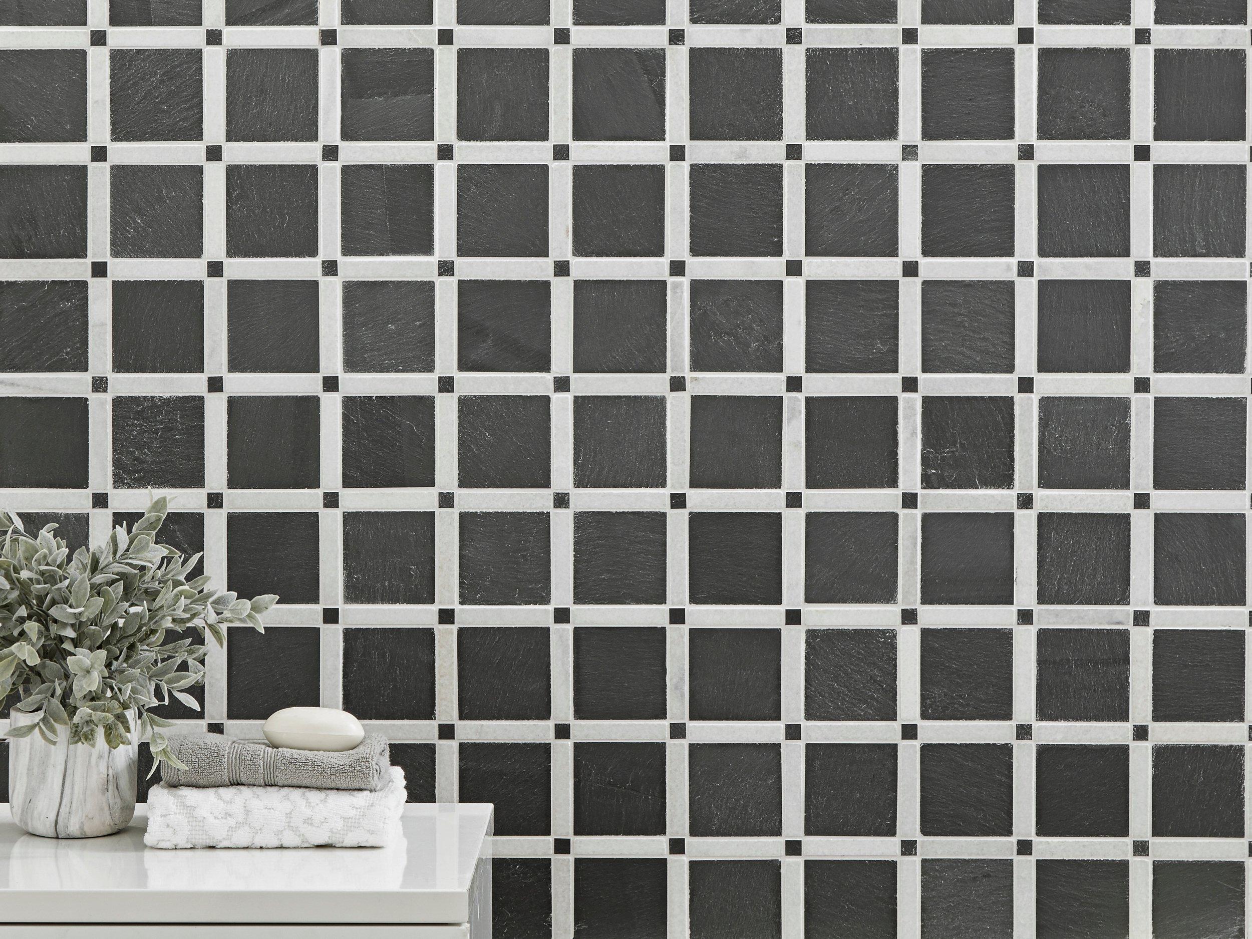 Black Slate Mosaic Tile — Stone & Tile Shoppe, Inc. Gorgeous Black Slate Mosaic Tile can be used to create unique, eye-catching designs with a classic or a rustic look depending on your style preferences. With a timeless black color, this natural stone tile is perfect for adding character to home designs and making a powerful statement in any space. This elegant tile is perfect for both indoor ...