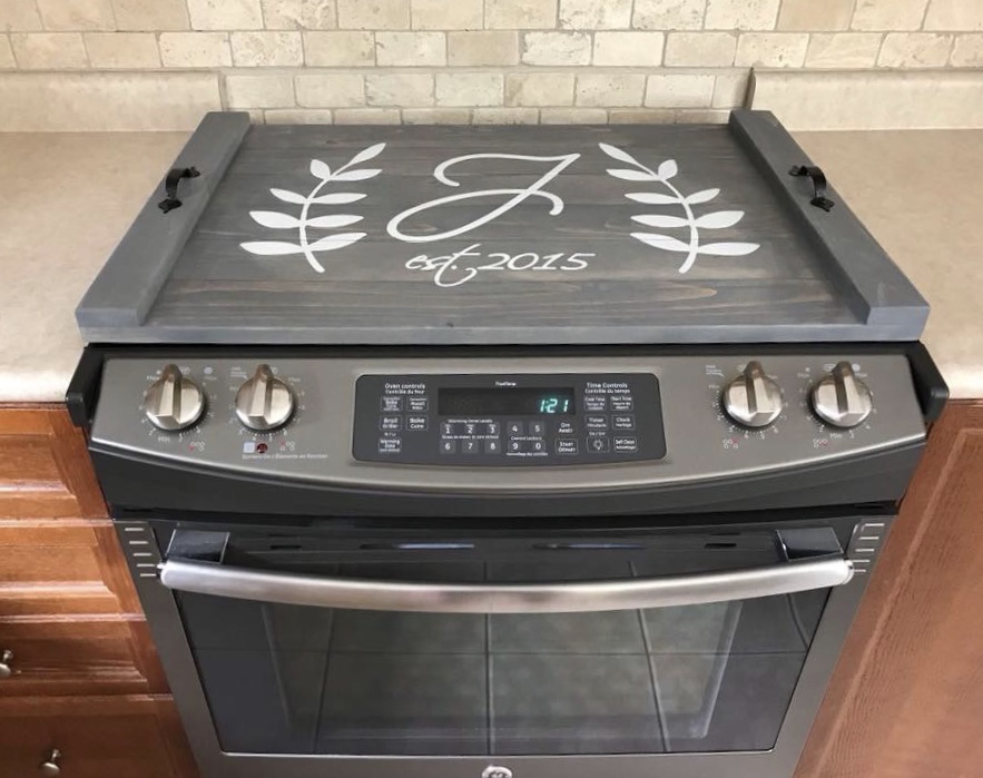 STOVE TOP COVERS (GAS & ELECTRIC) - Foundaytion Prints Our handmade wood stained stove top covers will add the perfect décor to your kitchen. Choose a design+ choose stain color+choose design color.