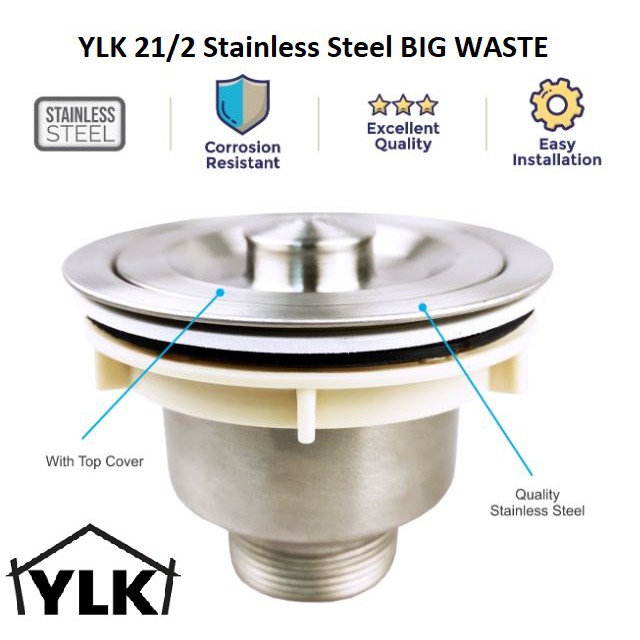 YLK Stainless Steel Strainer Filter Drain Basket For Kitchen Sink Waste Plug Stopper ,PIPE SIZE 11/2 / 40MM
