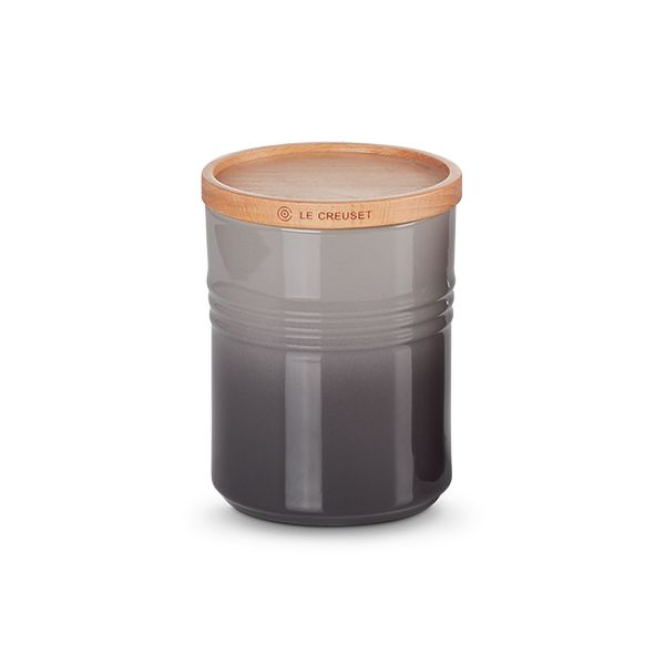 Small Storage Jar with Wooden Lid - Le Creuset | Sales The perfect way to store and keep ingredients fresh, while adding colour to kitchen shelves. These stoneware jars are designed to stack neatly and to mix or match at home. Features: Colour co-ordinates with the rest of the Le Creuset Stoneware range Available in different sizes for maximum storage efficiency