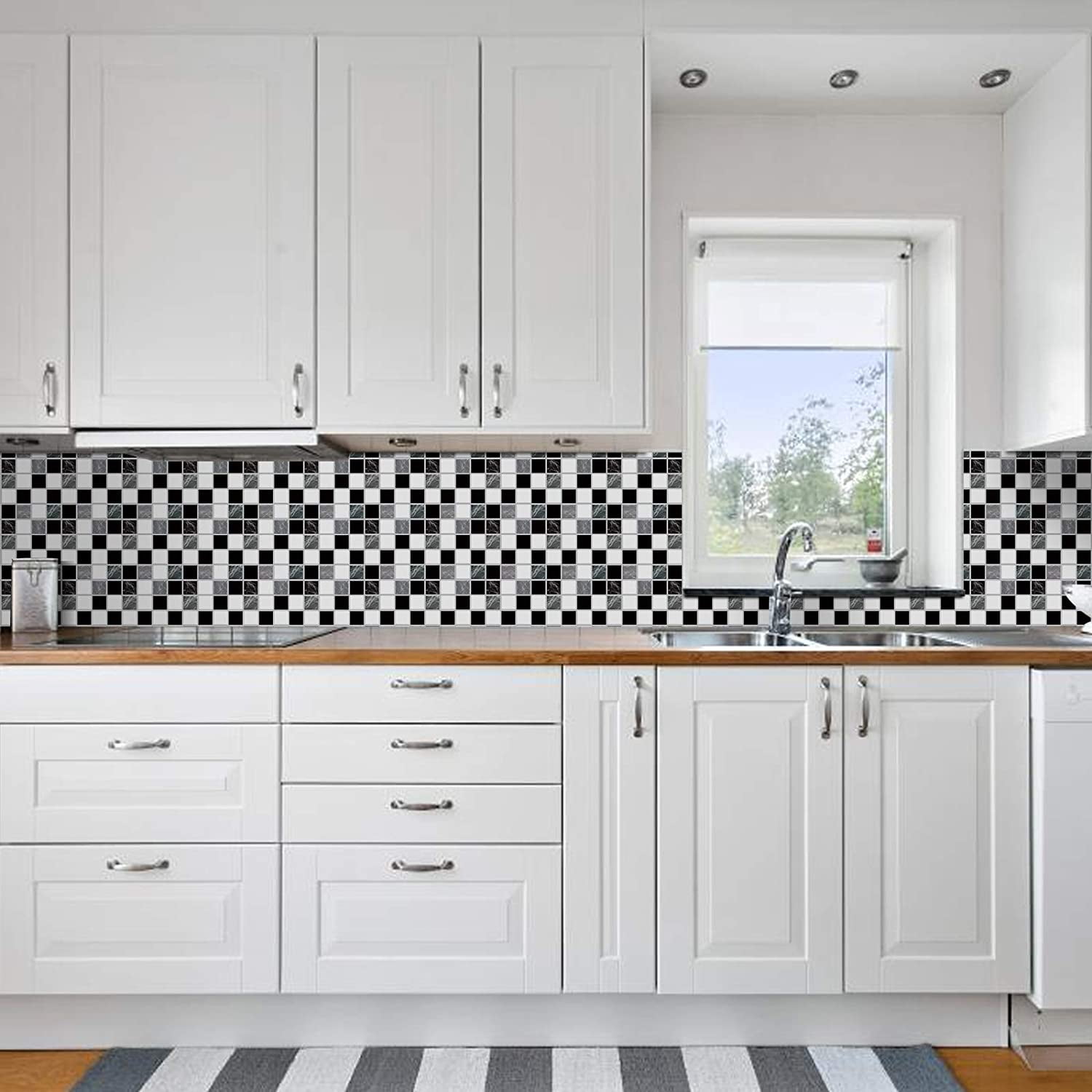 11.8''×78.7'' Peel and Stick Wallpaper for Kitchen Backsplash Wallpaper Black/White Contact Paper 3D Removable Tile Wallpaper Papel Tapiz para Cocina
