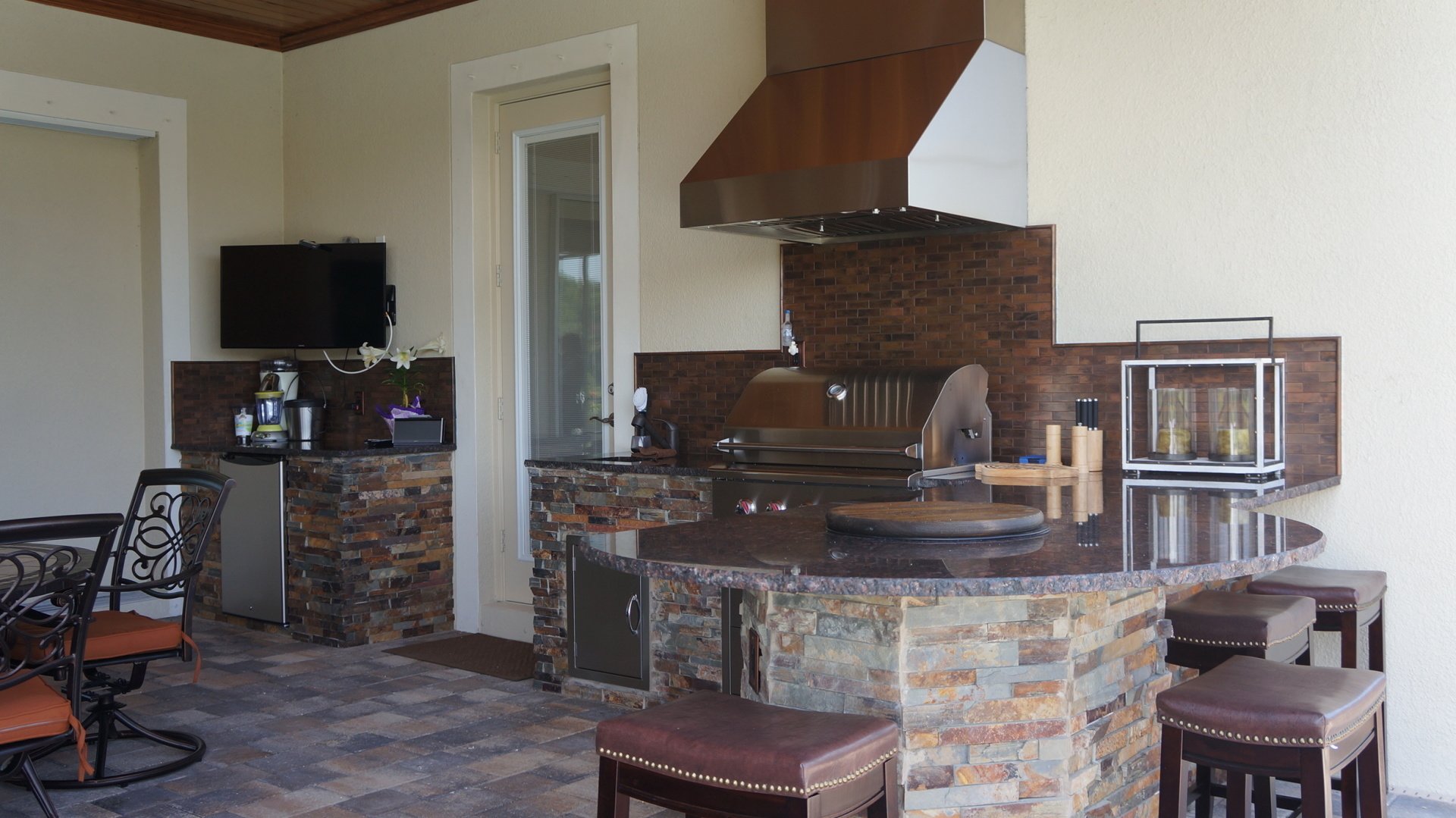 L-Shaped Outdoor Kitchens & Ideas | HL Posey Builders L-Shaped Outdoor Kitchens, Fire Features, Pergolas, Cypress Wood Ceilings from Marco to Sarasota to Tampa. Take a look at what we built in your neighbor's backyard. L-Shaped Outdoor Kitchens, Fire Features, Pergolas, Cypress Wood Ceilings from Marco to Sarasota to Tampa.