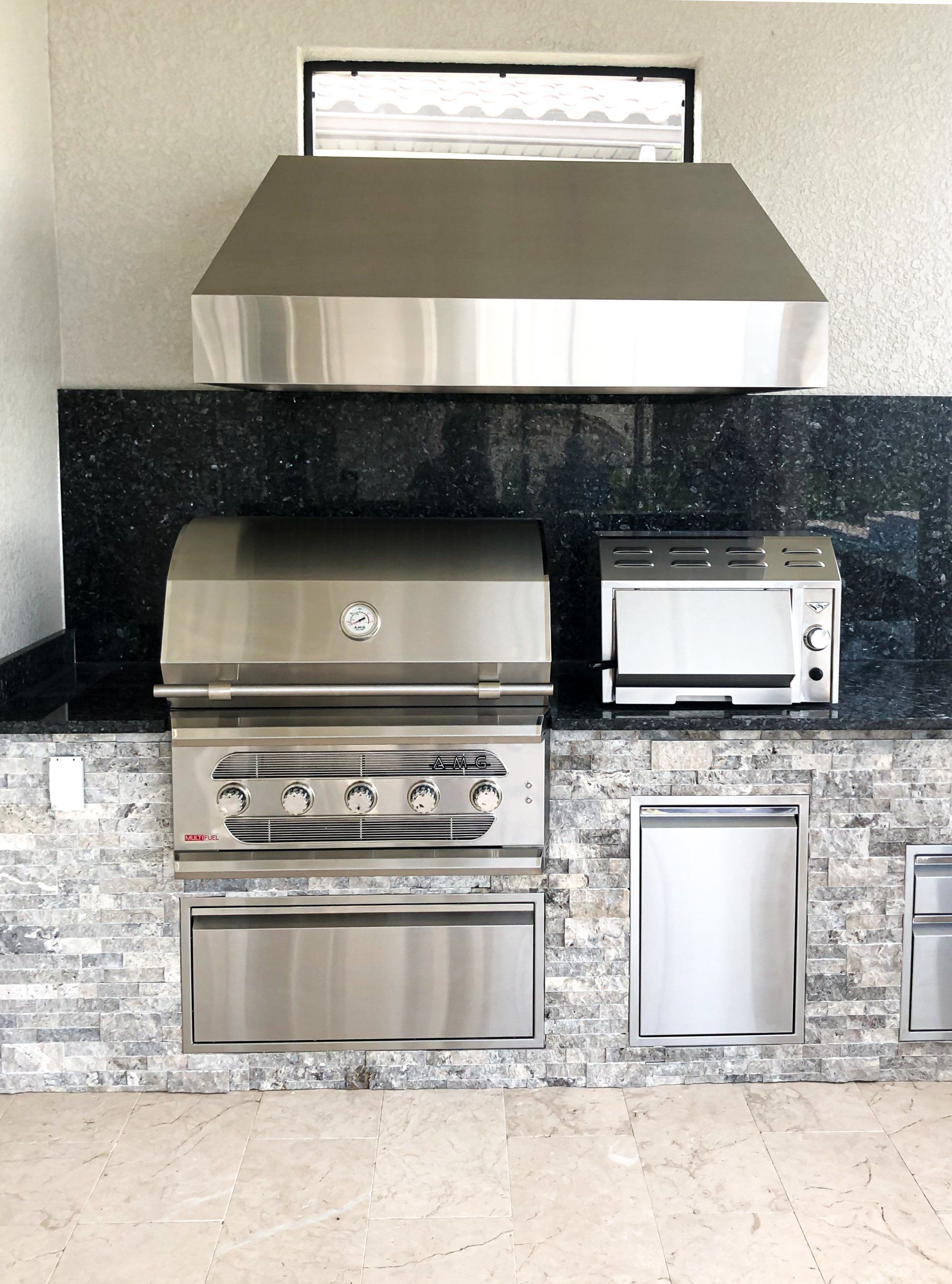 Outdoor Kitchen Valrico FL - Outdoor Kitchen Contractor ... Golden White Ledger Stone for the Facade with Granite for the Countertops finish the L-Shaped Outdoor Kitchen Area in Valrico, FL, enhancing the Oudoor Living Space. The new L-Shaped Outdoor Kitchen and Grill is complete and ready to start grilling, eating and enjoying! Fire Magic Aurora 660i Outdoor Kitchen BBQ Grill