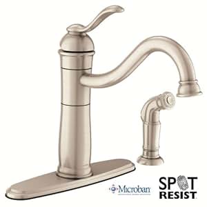Moen 87427MSRS Walden Single-Handle Side Sprayer Kitchen Faucet featuring Microban Protection in ...