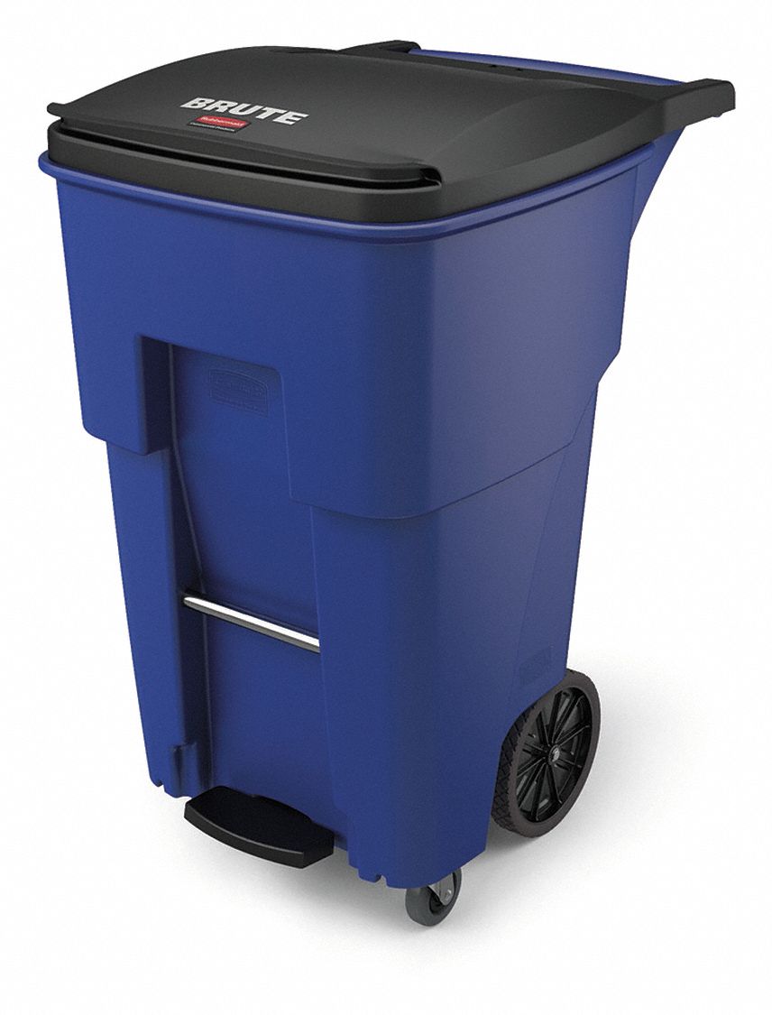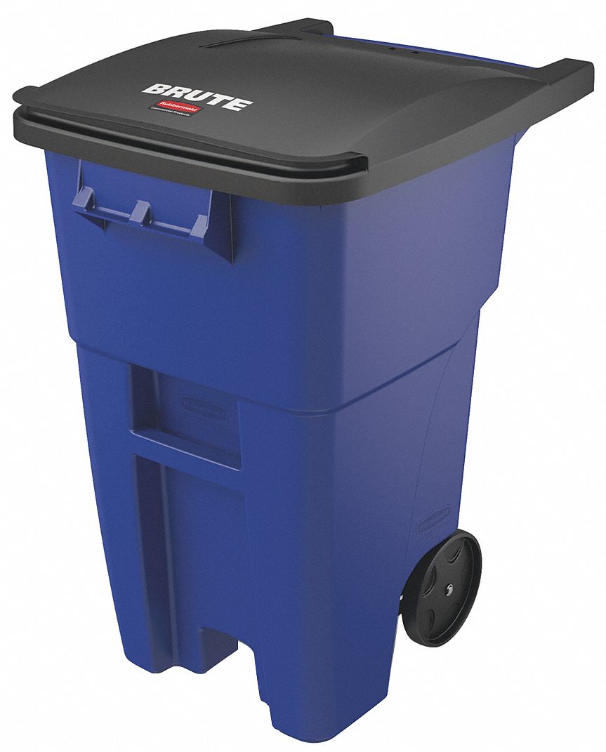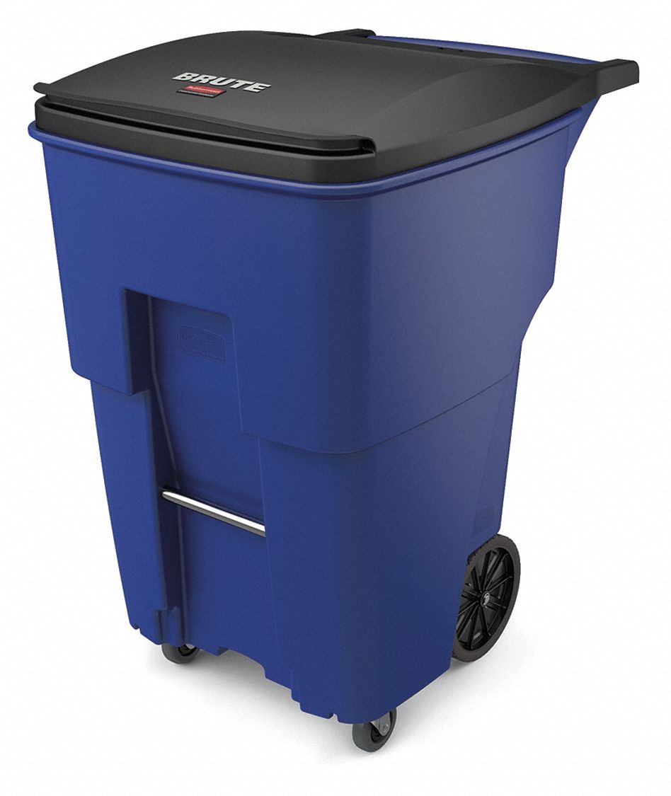RUBBERMAID COMMERCIAL PRODUCTS 95 gal., Rectangular, Rollout Trash Can, Plastic, Blue - 53PY49 ...