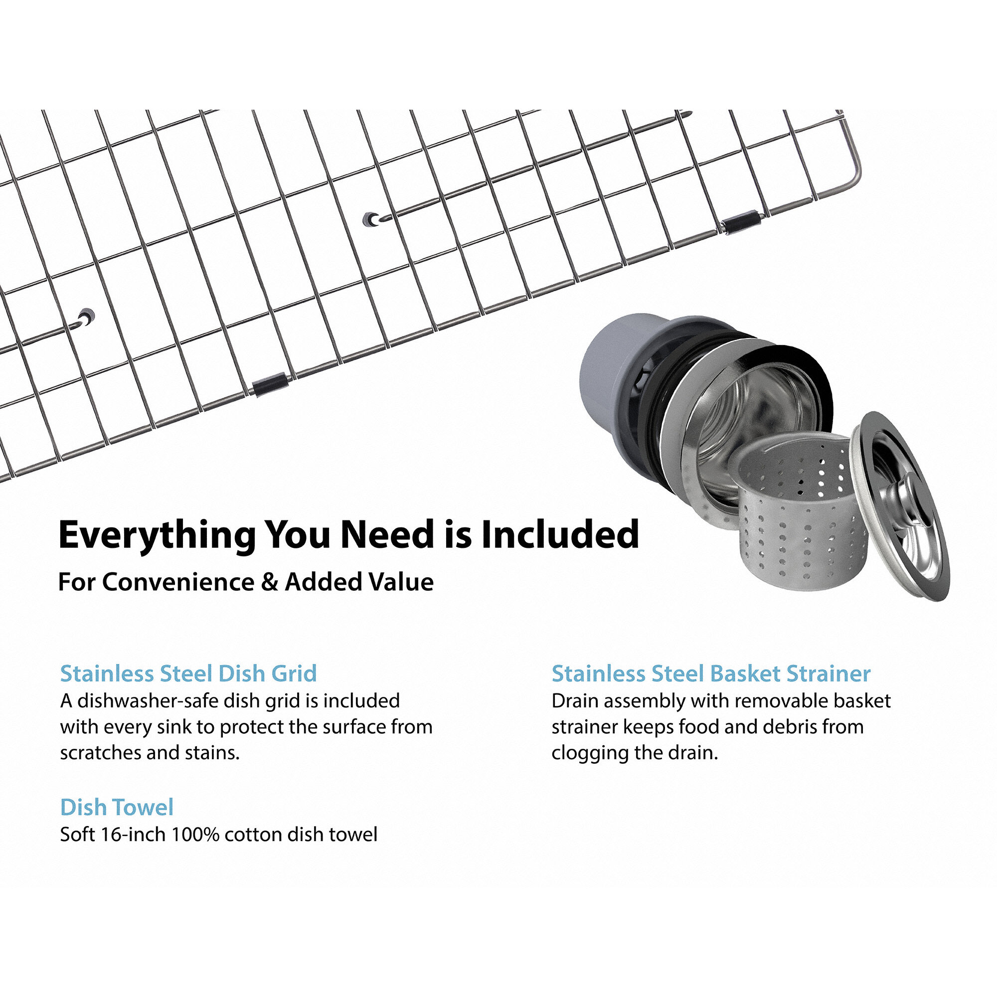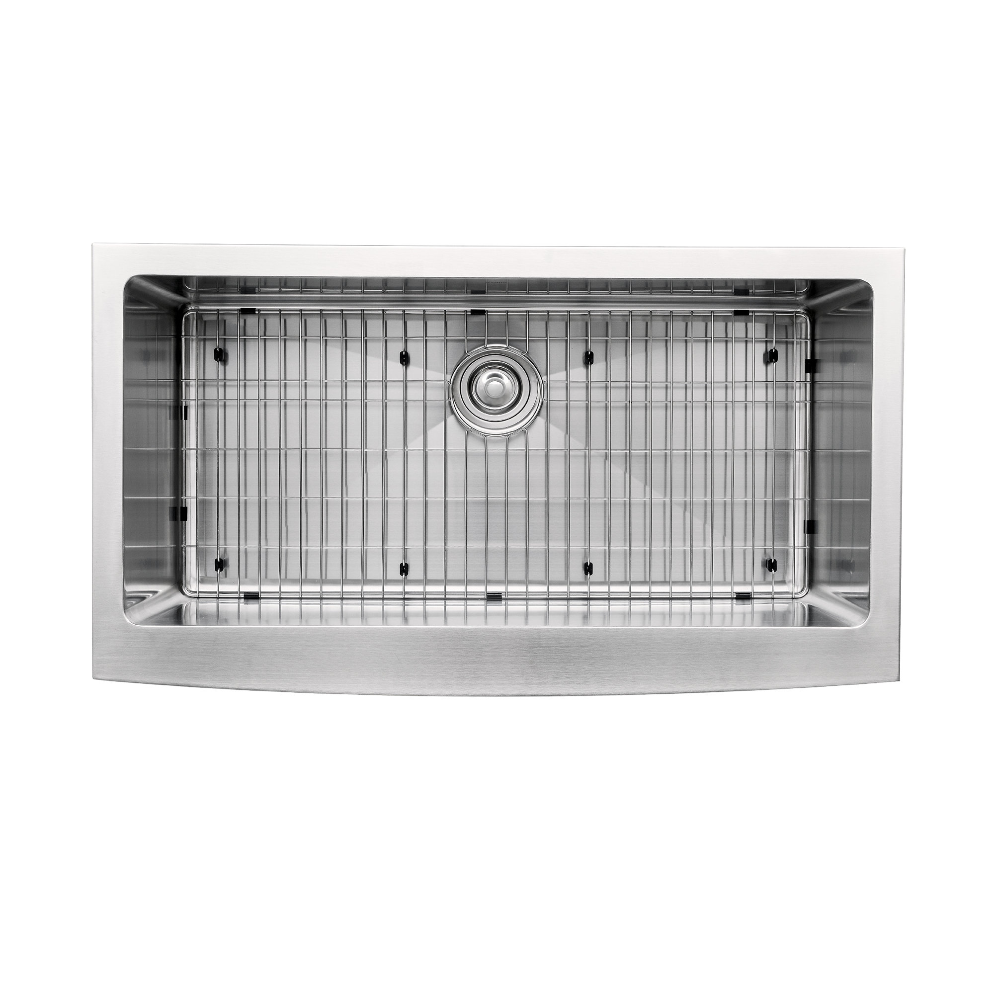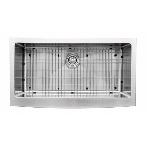 Kraus 30" Farmhouse/Apron Front Stainless Steel Single-Bowl Kitchen Sink This stylish single bowl sink provides a lifetime of functionality. For added convenience, a basket strainer drain assembly and stainless steel bottom grid are included free with purchase. Each bottom grid is cushioned by soft protective bumpers to prevent scratching. For easy installation, all mounting hardware is provided.