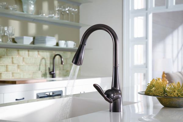 The 11 Best Kitchen Faucets of 2022 - The Spruce The Moen Adler is a pull-down faucet that features a single-handle design, which allows for one-handed adjustment of water temperature. The included deck plate is optional and can be used with 3-hole sink installations. Moen equipped this kitchen faucet with Power Clean technology, which gives the faucet 50 percent more water pressure.