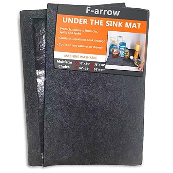 Gorilla Grip | Under Sink Mat Liner Color. Waterproof Protection: maximum protection from leaks and spills, big and small; the top layer is constructed of ultra absorbent felt fabric that acts as a tough barrier between liquids and cabinets; the bottom layer is waterproof for maximum protection. Won't Slip or Slide: thick, slip-resistant backing helps the mat stay firmly in place ...