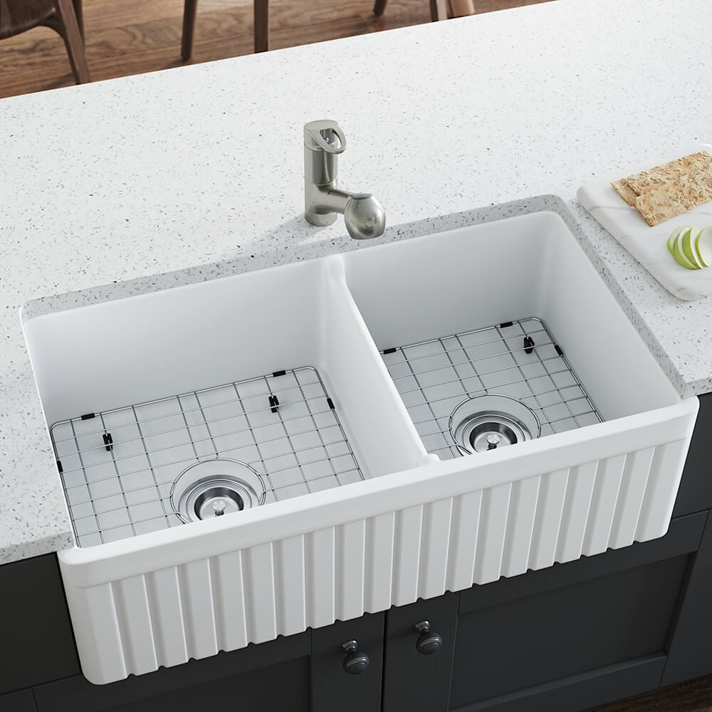 7 Best Fireclay Farmhouse Sinks in 2022 Review - Dwelling Expertise Best Fireclay Farmhouse Sink Reviews in 2022. 1. Kraus KFR1-33GWH Turino 33-inch Reversible Kitchen Sink; 2. Ruvati RVL2018WR 30-inch Fireclay Farmhouse Offset Drain Kitchen Sink; 3. Lordear LAW33209R1 33 Inch Farmhouse Kitchen Sink; 4. Sarlai SAW3318R2 33 Inch Fireclay Kitchen Farm Sink; 5. BOCCHI 1139-001-0120 Classico Apron Front Fireclay ...