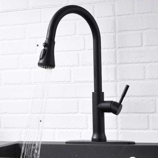 Black - Kitchen Faucets - Kitchen - The Home Depot modern kitchen. pull-down sprayhead. spray face. touch2o technology. water line. 90 degree. amazon alexa. art deco. black stainless appliances. drinking water ... Sous Pro-Style Single Handle Pull Down Sprayer Kitchen Faucet in Matte Black. by KOHLER (2618) $ 329 00. Edison Single-Handle Pull-Down Sprayer Kitchen Faucet in Matte Black. by VIGO ...