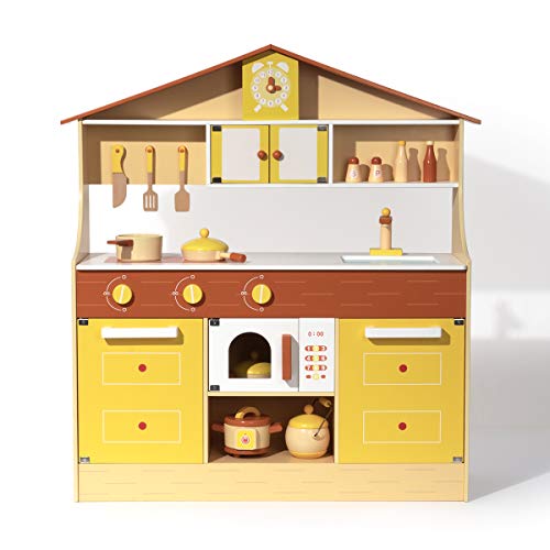 Kids Realistic Pretend Play Kitchen Set Kitchen Playset Toy Kitchen Set Wooden Kids Play Kitchen for Kids, Girls, Boys, Ages 4-8 by Naomi Home - ...