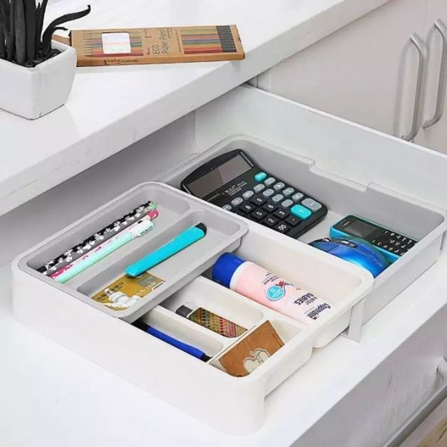 Expandable Drawer Organizers at Lowes.com A kitchen Expandable drawer organizer is handy for not only keeping your utensils separated but also for organizing a junk drawer or even a desk drawer. It's simple to just throw things in Expandable drawers, but often that results in items getting lost or wrinkled, or the Expandable drawer being stuffed so full that it won't open anymore. ...